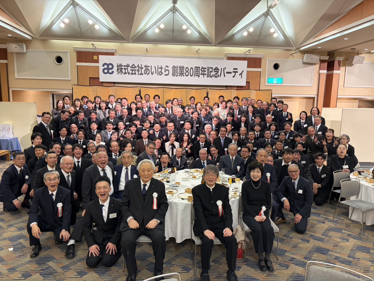 2026年1月10日、ホテルクラウンパレス北九州にて創業80周年記念パーティーを執り行い、社員一同で祝いました。